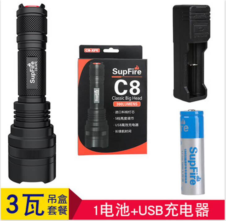 SupFire神火C8强光手电筒可充电LED超亮远射户外防水T6家用骑行灯