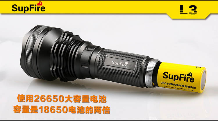 正品SupFire神火L3强光手电筒可充电26650户外远射超亮500米
