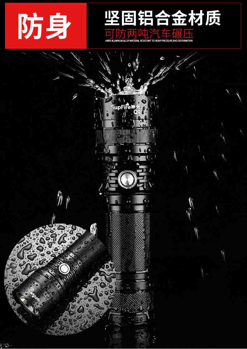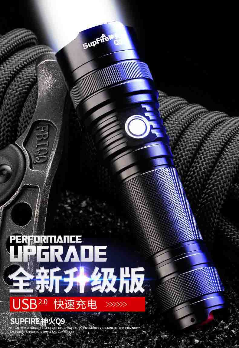 SupFire神火C8强光手电筒可充电LED超亮远射户外防水T6家用骑行灯